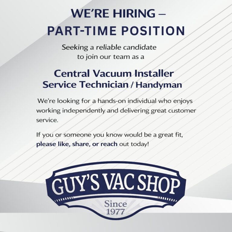 EXCELLENT Based on 21 reviews Posted on Chris AxfordMarch 18, 2021. Purchased a new central vacuum with installation. Sales and installation techs were very professional. We could not be happier with our new Canavac. It works so much better than our previous stand up vacuum.Posted on Dave MartensFebruary 22, 2021. Excellent selection, Excellent service.Posted on MikeJanuary 20, 2021. Good selection and great service!Posted on Henry FlatteryNovember 13, 2020. These guys really know their stuff and their prices are quite reasonable. I highly recommend them.Posted on Sandra De BoerOctober 30, 2020. Great service! Great prices. Knowledgeable staff. So pleased to have this local business in our community.Posted on Jake WiebeAugust 25, 2020. Guy's vac shop sold my family our first central vacuum back in 1993. It's still going strong in 2020!!! Just replaced the hose with another one from Guy's Vac Shop because of 25 years of use took its toll on the hose. Unbelievable quality. This shop has good pricing, friendly and knowledgable staff. I would never go elsewhere for anything vacuum related. Thank you for offering the wonderful service that you do.Posted on Jim GrischFebruary 28, 2020. Great pricing , great service , challenging installation but we worked together - all is great - Good job Brandon , Bruce and Willy !!Posted on ken stevensonFebruary 1, 2020. Great service very good people not pushy been dealing with them for 35 yrs